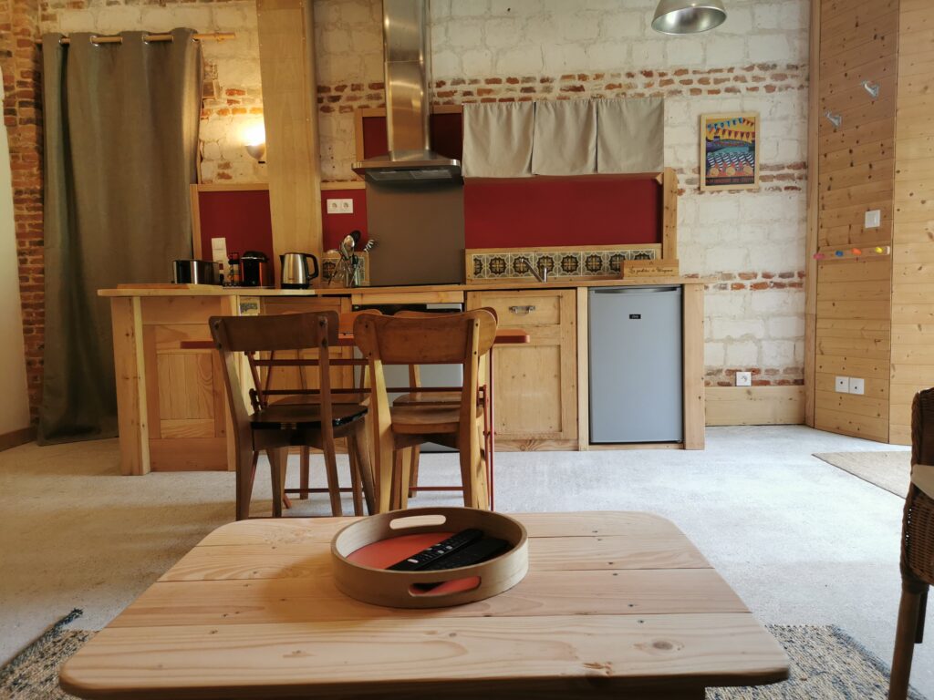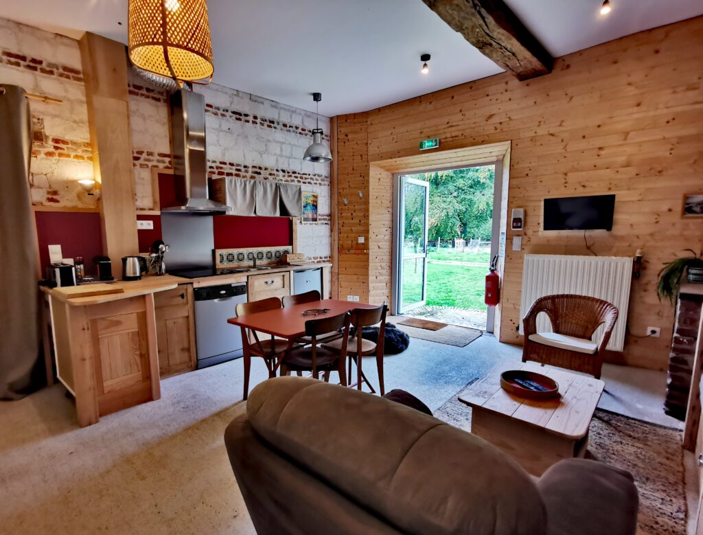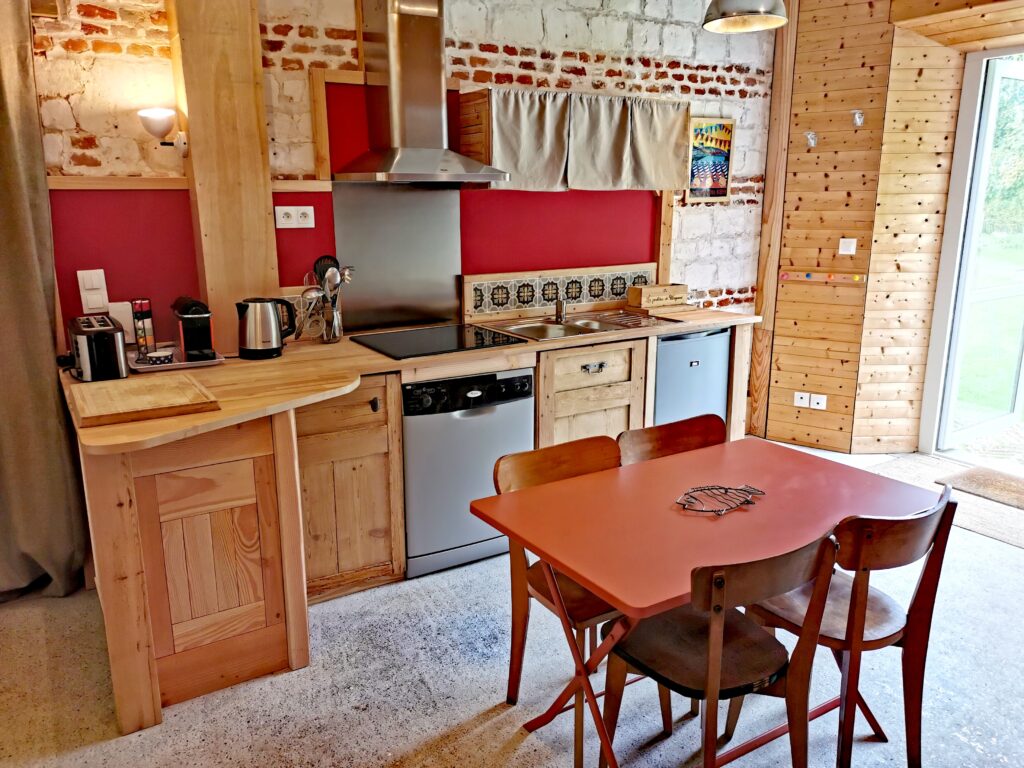 - Cuisine ouverte entièrement équipée : lave-vaisselle, plaques induction, réfrigérateur, grille pain, cafetière, cafetière à piston.