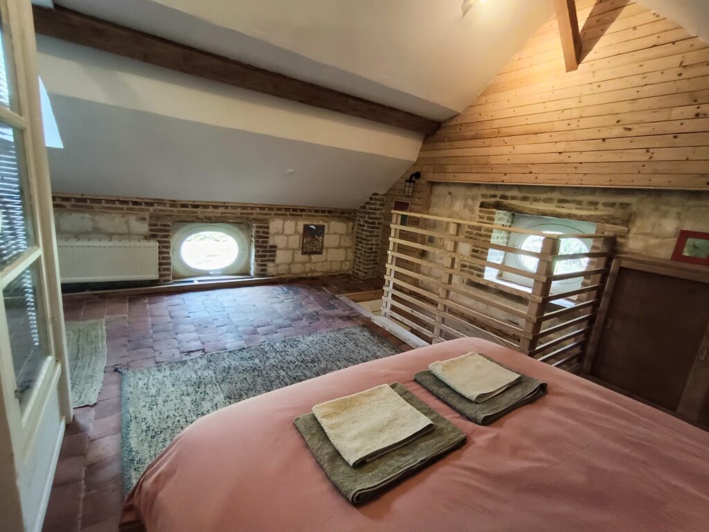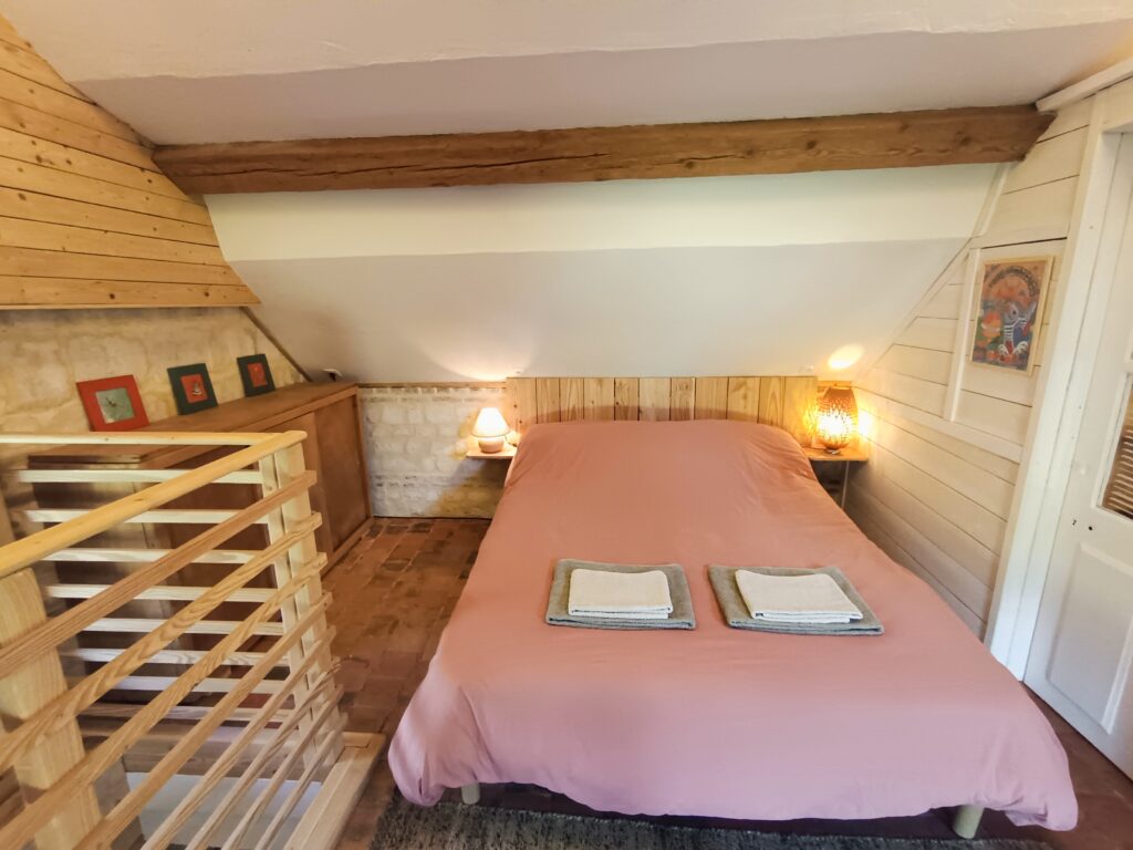 - Une chambre 2 personnes avec lit 160x200cm, espace lecture avec fauteuil,